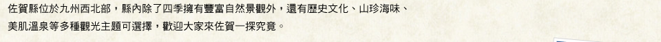 佐賀縣政府所在地-佐賀市是以前的城下町,在這裡隱藏了如佐賀城遺址、武家屋敷等歷史建築物,保留了當時繁榮氛圍的殘影。時間再往前追溯到更久遠的時代,距離