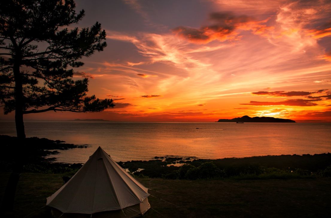 唐津市的波戶岬露營場,是一座坐擁無敵海景、能眺望絕美夕陽景致的露營地。業者提供4種不同的露營區,除了「一般露營區」外,亦有一帳一車位的 「汽車露營區」。想在絕佳位置觀賞玄界灘落日美景的粉絲,也可以選擇能在大片草地中,隨意挑選搭帳地點的 「自由搭帳區」。若是預算充足,還可以預訂備有空調、冰箱的「豪華露營區」。