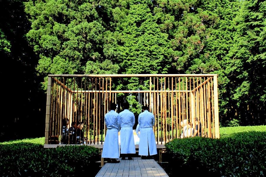 360度被檜木、杉木所包圍如聖域般的封閉式飲茶空間。(永尾豐裕茶園2018年4月設立)
