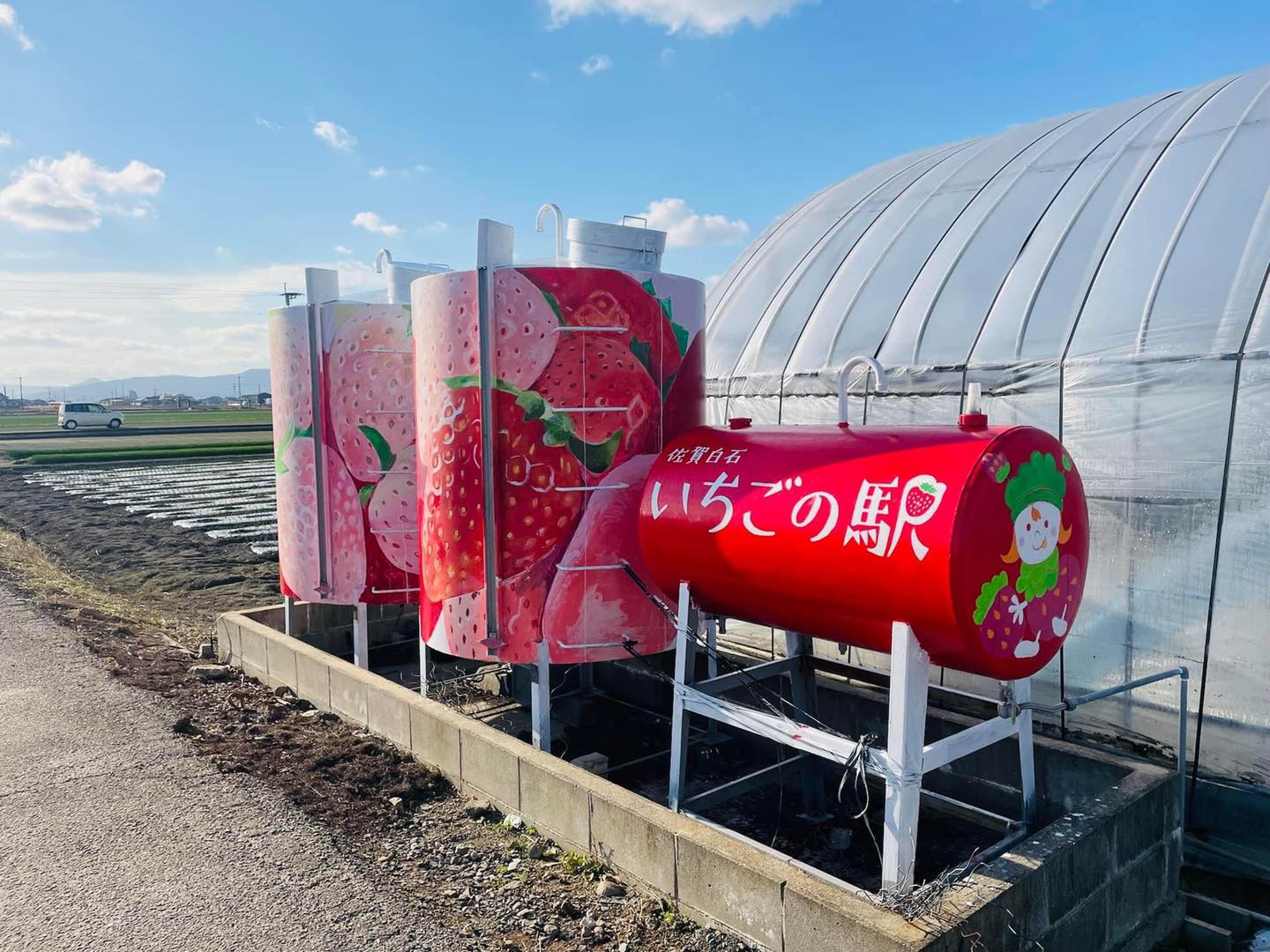 2022年1月才開幕的「草莓車站(いちごの駅)」,就開在公路休息站白石旁邊。由岸川農園第三代經營的觀光草莓園,最大特徵就是可以一次吃到9種草莓。除了佐賀最具代表性的「佐賀穗之香」和「草莓小姐」品種外,還有顏色超吸睛的白色草莓「淡雪」以及黑色草莓「真紅的美鈴」,黑色草莓可不是因為過熟才發黑,而是品種本身顏色從果皮到果肉都呈現深紅色,是非常稀有的品種喔!預約請洽: