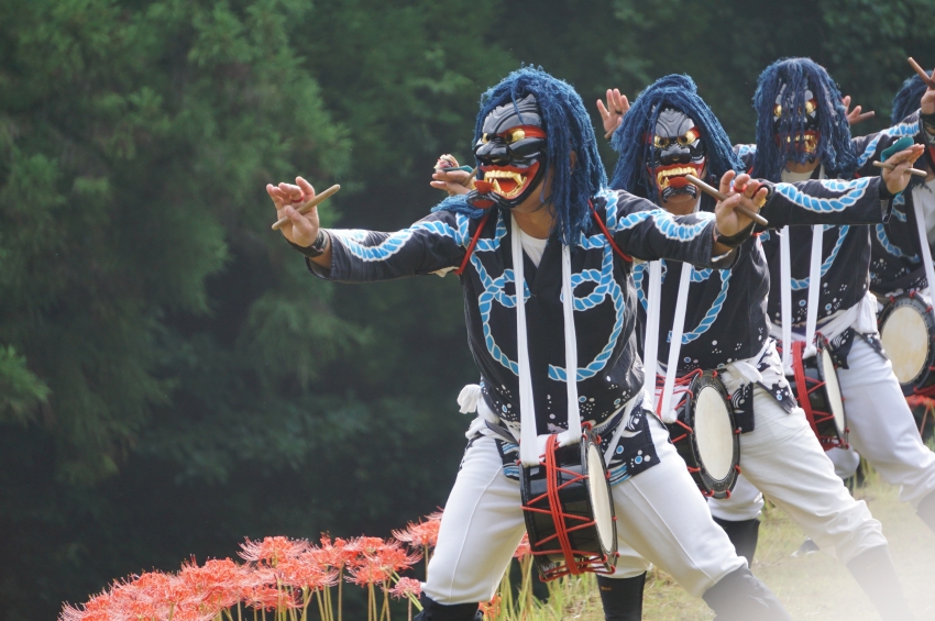 每到秋天,佐賀各地有許多「面浮立」祭典相繼登場。鹿島市的「淺浦彼岸面浮立」被指定為重要民俗無形文化財,傳說是400年前居民為了慶祝打勝仗而戴上鬼面跳舞慶祝,後來演變成每年秋分祭祀神明的傳統祭典。
