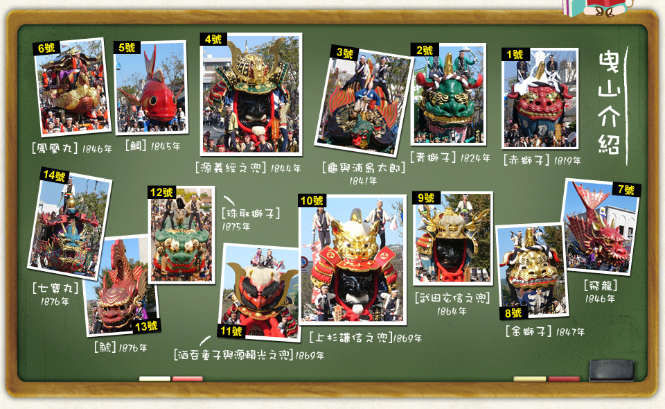 活動,一年一次可觀賞到所有曳山出場就只有這個時候,趕快認真筆記每天精彩的活動吧!