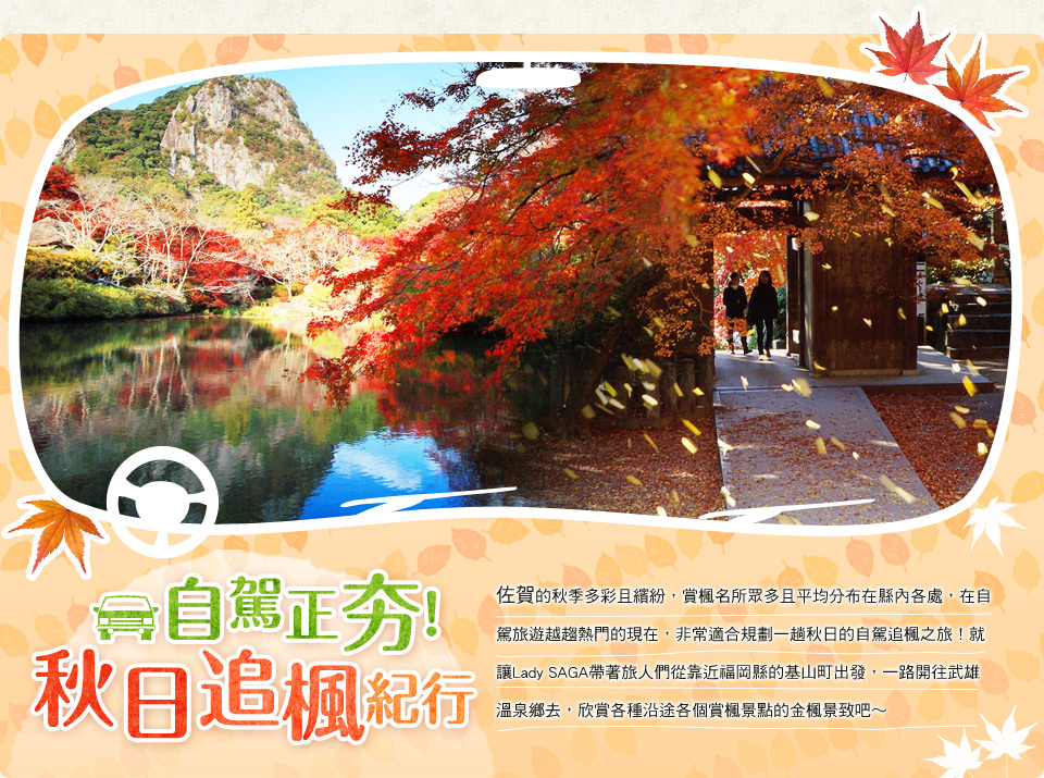 擁有1300年歷史的古寺「大興善寺」位於佐賀契山的山腳下,坐擁75,000平方公尺的廣大庭園與多達500株的楓葉。想要一睹這裡的紅葉風光,推薦於11月中旬到12上旬前來欣賞,除了整片紅葉及夜晚的夜楓點燈外,看紅楓與灑在地上的金黃銀杏花毯相映也別有一翻滋味。濃濃的歷史風情相較於有名的京都楓景全然不遜色,是佐賀人的私房賞楓名所喔!