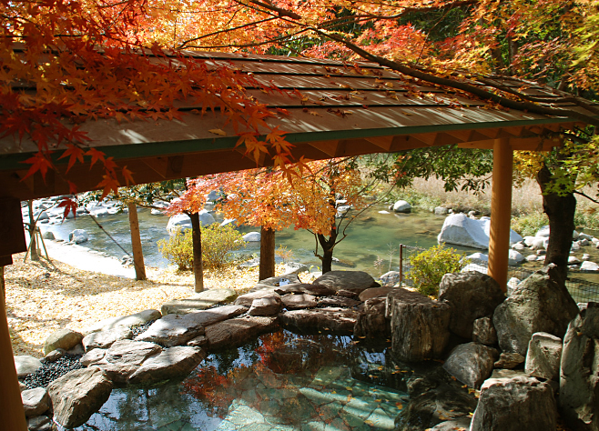 年歷史的古湯溫泉,浸泡其中有如在化妝水中讓肌膚滑嫩有彈性。寧靜的氛圍中只聽得到貝野川的涓涓溪流聲,可沉澱身心靈讓身體獲得深度休息。