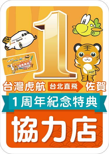 時光飛逝!台灣虎航佐賀航線已經開航一周年了,為了慶祝這特別的日子,台灣虎航特別與佐賀縣內的商店、餐廳、觀光景點及住宿設施合作,即日起至2020年3月底,只要憑台灣虎...