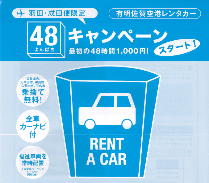 東京直飛佐賀機場,租車兩天只要千元日幣!