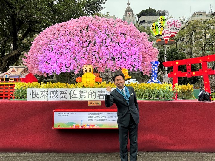 迎接春天!佐賀縣長現身台北燈會秀百年山櫻花燈推觀光