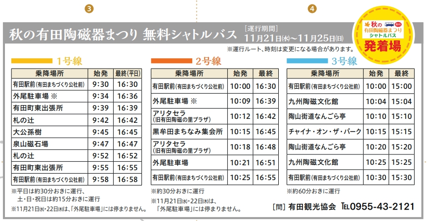 ●秋之有田陶瓷器祭提供免費接駁巴士