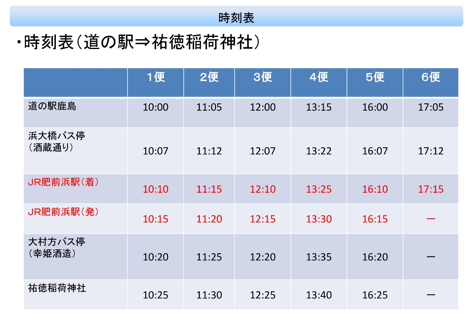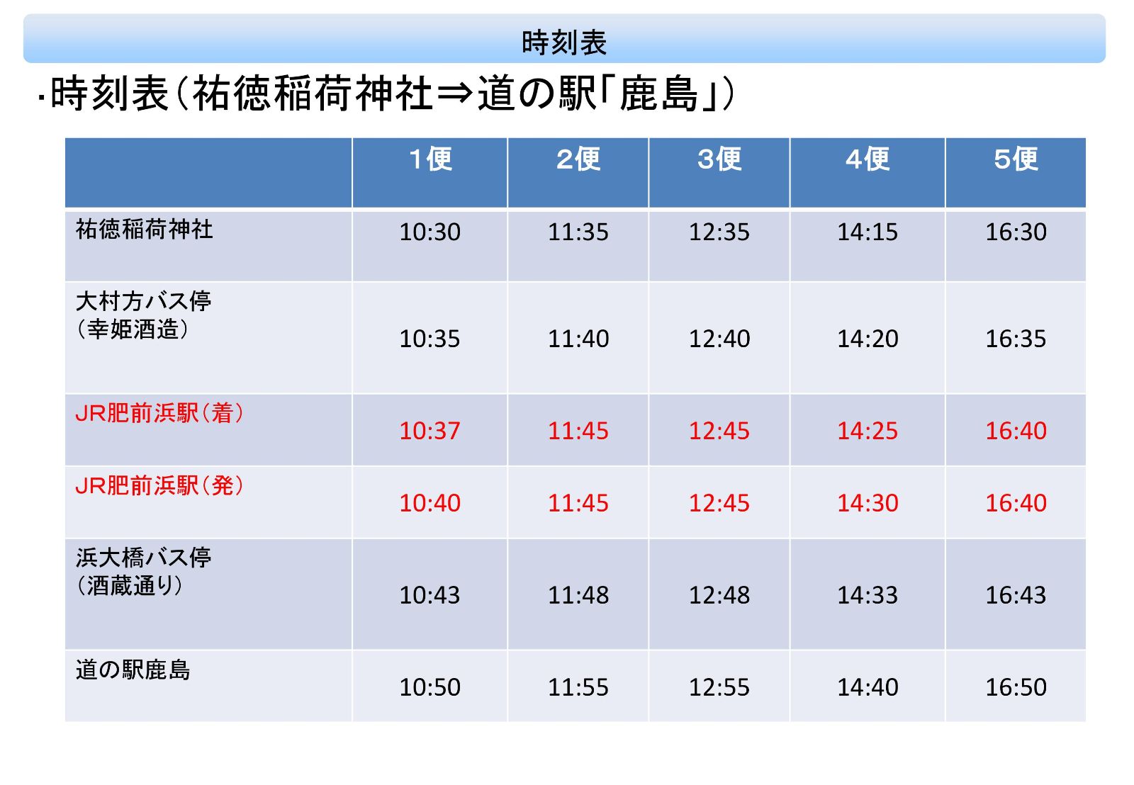 ▋時刻表:祐德稻荷神社➡鹿島休息站(道の駅)