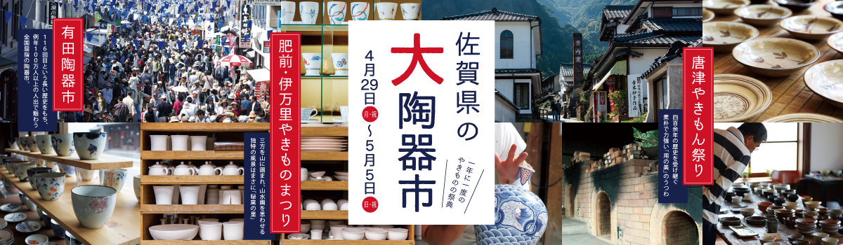 今年日本5月即將改年號,加上黃金周連假長達10天,日本各地的活動也特別的多,原本每年佐賀有田町的4/29~5/5「有田陶器市」的活動之外,同時間在唐津市及伊萬里大川內山也都陶器祭典活動,身為日本陶器控的你絕對不能錯過這盛大的陶器祭典,大大小小器皿用最優惠的價格大出清,大家快來挖寶吧!