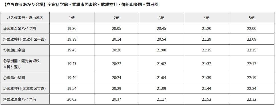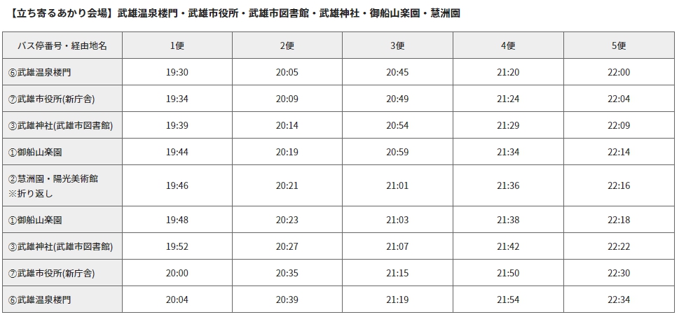 周遊巴士(每人隨意支付100日圓武雄光之巡禮)