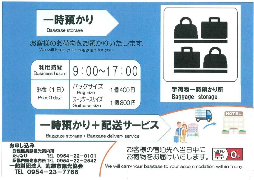 適合當日入住武雄事不返回車站,直接到市內住宿飯店入住時取行李的客人。