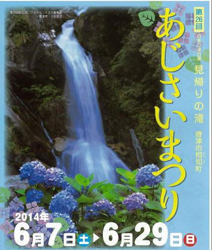 最近日本各地正是紫陽花展放的時節,佐賀縣內也有很著名欣賞紫陽花的景點喔!就在佐賀唐津市境內的見返瀑布(見帰りの滝),這裡可是被獲選為「日本瀑布百選」之一的瀑布,四周的景色隨著不同季節盛放的花而染上不同顏色,而當中最漂亮的當然是紫陽花盛開的季節,每年從6月上旬~7月上旬之間都會吸引許多遊客特地前來參觀。