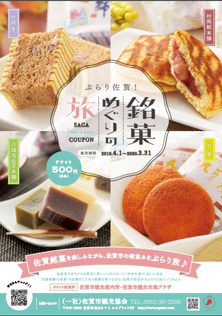 在佐賀縣有許多知名的甜點老舖,像是佐賀錦、小城羊羹、丸芳露等都是佐賀代表的名產,為了讓大家來到佐賀市區能夠輕輕鬆鬆嚐遍這些美味的甜點,特別推出了「ぶらり佐賀!銘菓めぐりの旅(甜點巡禮的兌換券)」,這張票券只要500日圓,從JR佐賀車站車來後,沿著佐賀市區主要的中央大通散步,然後邊到甜點老舖兌換美味可口的甜點。