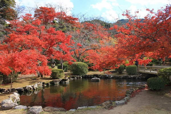 西溪公園是出生多久市大企業家炭坑王「高取伊好」花了自己的財產重新整理的公園,完成後就捐給了多久市管理,有錢人真是闊氣呀!公園裡的寒鶯亭更被登錄為國家文化財,這裡除了春天可賞櫻,秋天也是賞楓名勝,而且位於多久市中心算是交通便利的賞楓景點喔!