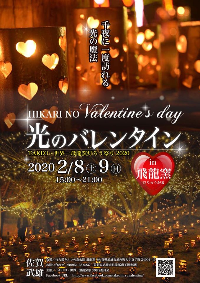 日本進入冬季為了讓氣氛更溫暖,都會有許多熱鬧又浪漫的彩燈活動,在佐賀武雄市每年最令人期待的就是「TAKEO・世界第一飛龍窯燈籠祭」。飛龍窯號稱全世界最大容量的窯燒所,全長有23公尺,一次可以燒製12萬個茶杯,在每年冬天都會舉辦燈籠祭,都會吸引許多人前來參加,特別受情侶們的歡迎。