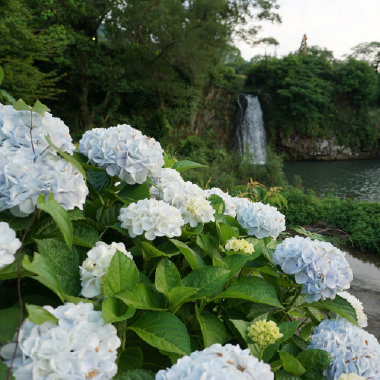 以中木庭水壩湖畔為中心,約有7000株繡球花盛開,遊客們能沿著河畔公園,愜意地欣賞湖畔旁的生態環境,享受被滿滿花海包圍的幸福感!