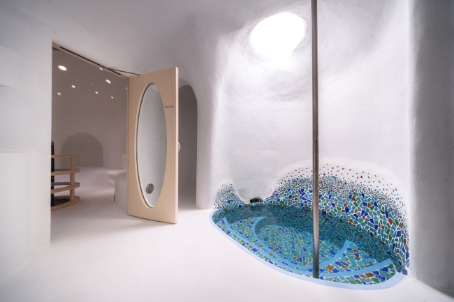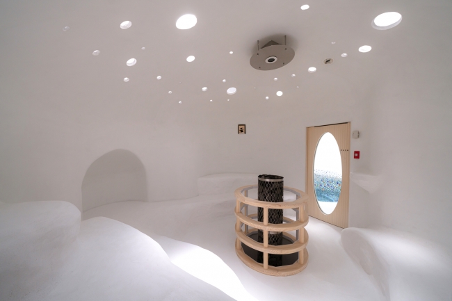 以自然光注入的白色為基調,藉由雲和太陽的移動軌跡,時時刻刻皆有不同的感受,是藝術結合桑拿的全新體驗。