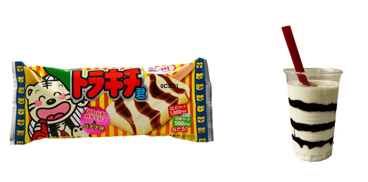 小城市推出的另一項產品則是「虎吉君奶昔」,由當地企業-竹下製菓旗下的超人氣冰淇淋「虎吉君」改造而成。在香蕉奶昔中加入巧克力醬,外觀仿若老虎斑紋,不僅外表有趣吸睛,還能嘗到攪拌前後的不同口感!
