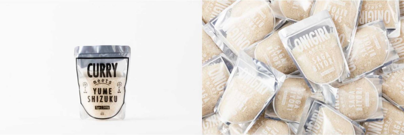 摒棄市售食米的大包裝形式,「meets RICE」採輕量包裝,每包300克,既不佔空間也不用擔心會超重!裏頭裝有米業專家嚴選的武雄產米,分別為適合配咖哩的若木產夢SIZUKU、及適合製成飯糰的橘產SAGABIYORI。外包裝上亦印有淺顯易懂的CURRY、ONIGIRI(飯糰)字樣,收禮者一眼就知道怎麼搭最對味,超方便!