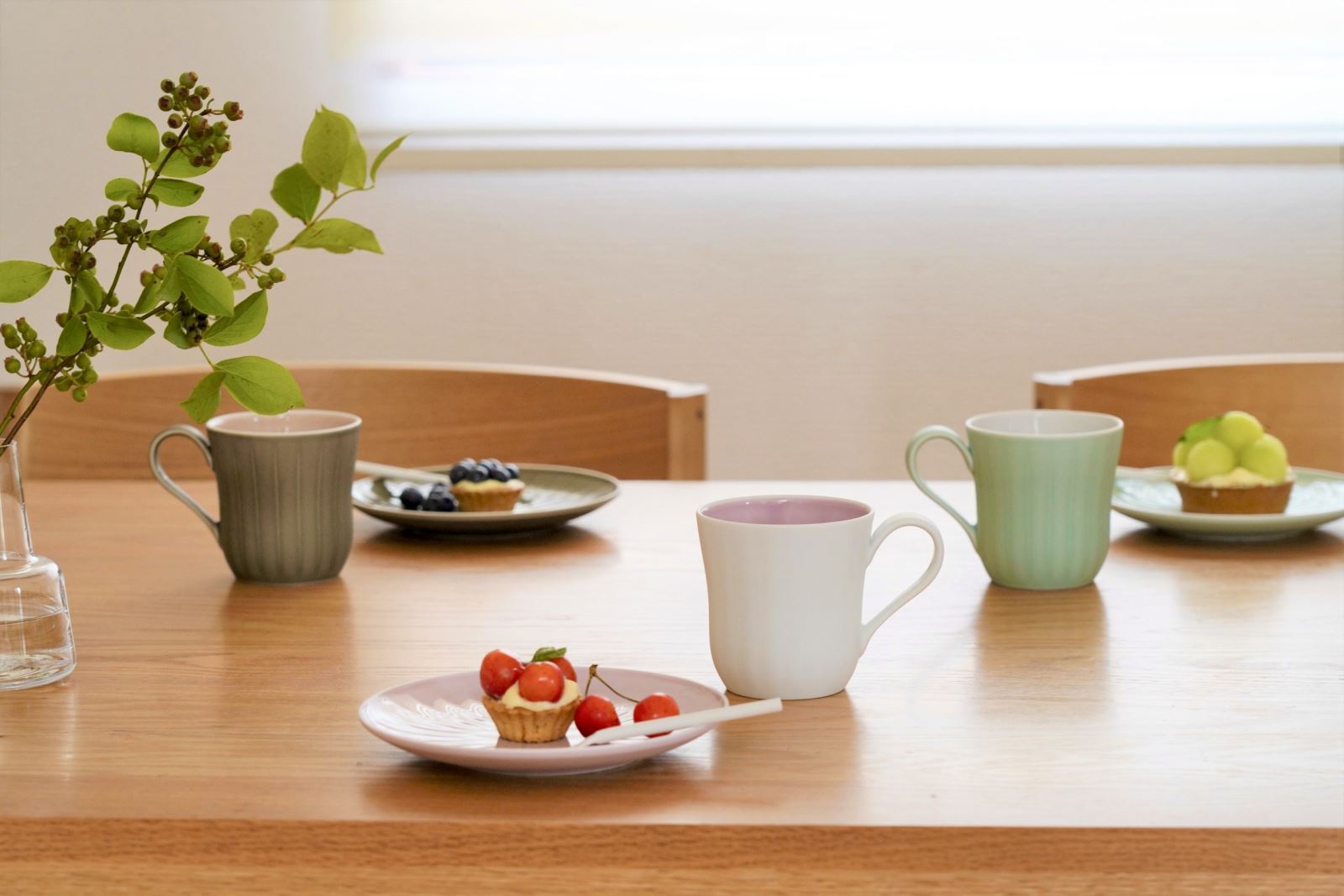 彷彿能體驗到北歐自然風情的杯盤,帶有壓紋線條,柔和色調的杯身外側使用香蘭社拿手的特殊工藝法加工,使其充滿霧面感;而內側則是帶有光澤的平滑面,方便清潔。居家的下午茶時光,將它們擺上桌,包準質感爆棚!