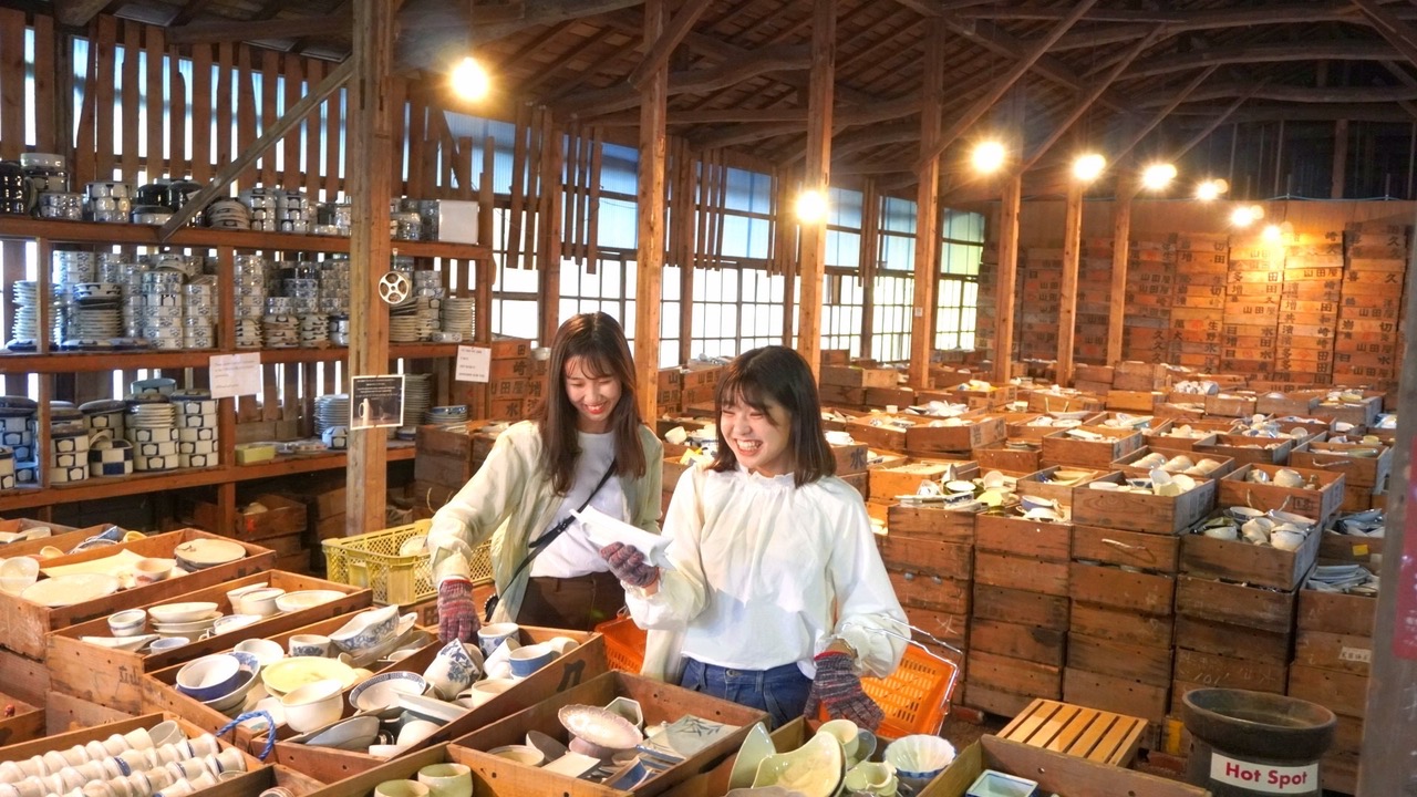 由「幸樂窯・德永陶磁器」舉辦的工廠參觀、尋寶體驗,不只能對有田燒有進一步的了解,還能在陶瓷器皿堆積成山的瓷海中挖寶,限時90分鐘內,倉庫中的有田燒任你裝到滿。不管是市面上見不到的半成品、富有年代感的陶瓷餐具,或是華麗感滿滿的精緻瓷器,只要籃子裝得下,通通都能帶回家!