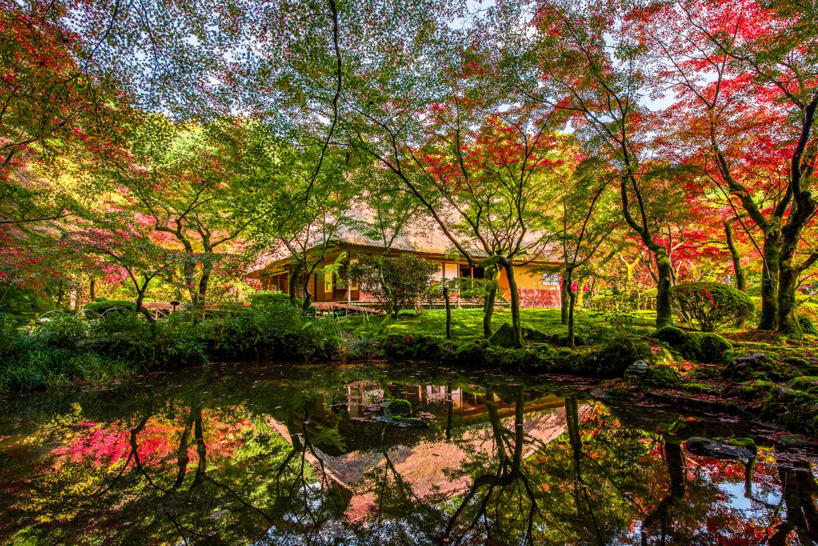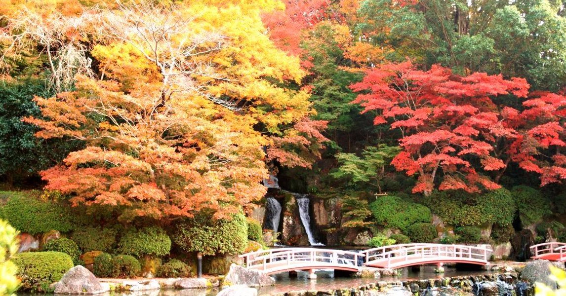 號稱九州嵐山、占地約1.5萬坪的十可苑,過去曾是鍋島家的別墅,每年僅有春季石楠花、杜鵑花期與秋季賞楓期才會開放民眾入園參觀。11月中旬後,園內的楓葉會逐漸轉紅,遊客可漫步在充滿日式風情的庭園,觀賞紅橙黃交錯的楓紅美景,亦能前往文珠瀑布聆聽潺潺流水聲,感受瀑布與楓葉相互交織而成的秋日氣息。