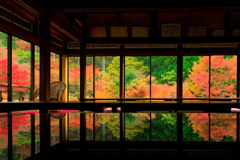 高野寺是以石楠花寺聞名的古寺,紅葉祭期間,白天能欣賞佇立在高處的多寶塔被楓林環繞的美景,夜晚打燈後更添迷幻氛圍。即使碰上雨天也不怕掃興,可走在有屋頂的迴廊上欣賞煙雨中的紅葉,別有意境。