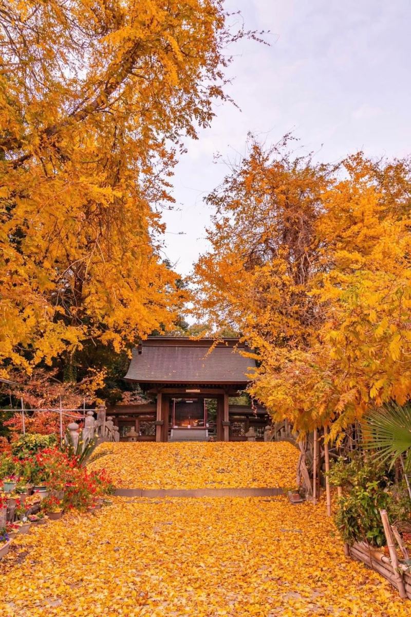小城市牛津町的乙宮社神社,最出名的是壯觀的天花板壁畫,由在地高中生和畫家們共60人完成,繪出乙宮社和牛津町的歷史故事,值得一看。秋天灑滿一地的銀杏地毯,尤其令人驚艷!