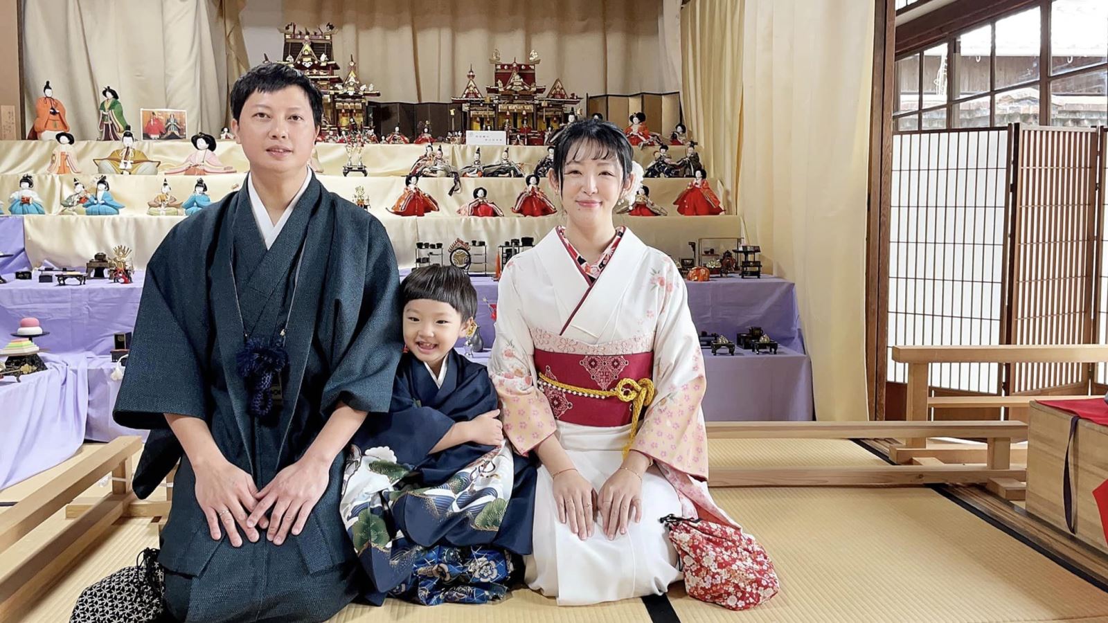 ▲涵天一家三口的和服全家福紀念照。照片提供╱涵天