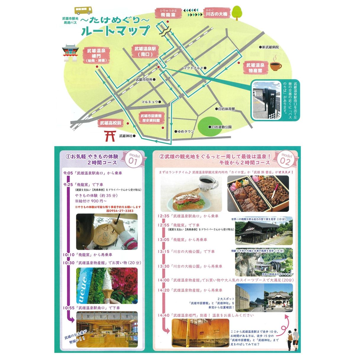 武雄市推出超佛心便利服務〜市區觀光周遊巴士從4月2日至明年3月底,每週日和日本國定假日發車,搭一次大人只要200日圓、小學生100日圓,途中下車後跟司機領了「再乘車證」,可以免費再次上車。