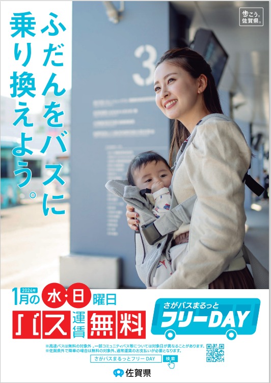 2.佐賀縣內運行的昭和巴士、佐賀市營巴士、祐德巴士、西鐵巴士佐賀、西肥巴士久留米、JR九州巴士、JOIX巴士、縣內各市町運行的社區巴士等,都是免費對象。※部分預約型共乘接駁計程車不在免費對象內。