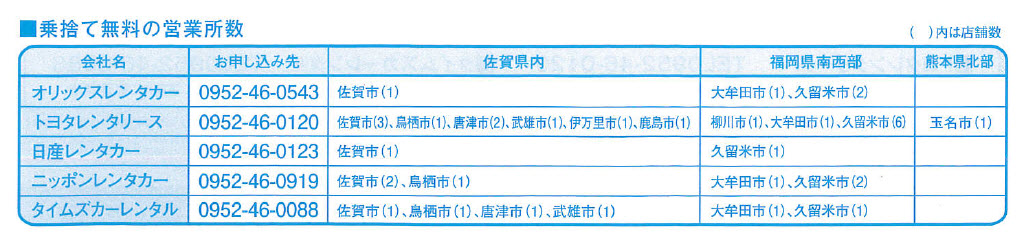 ※取車地僅限於有明佐賀機場,還車地可於佐賀縣市內的營業所還。