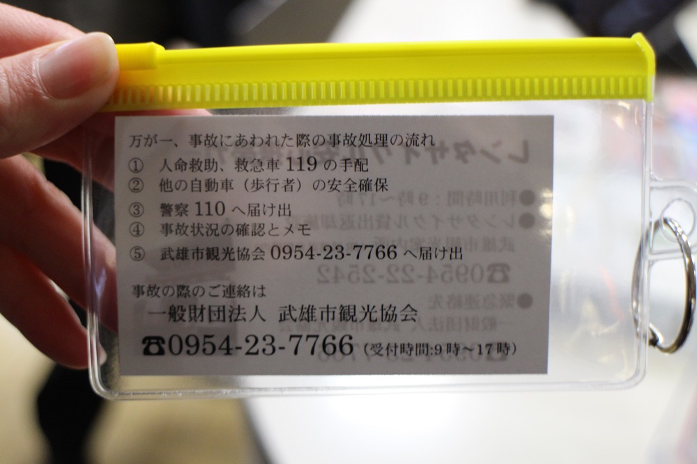 租借完成後會給一張遇到事故時的緊急連絡電話的卡片,十分貼心!