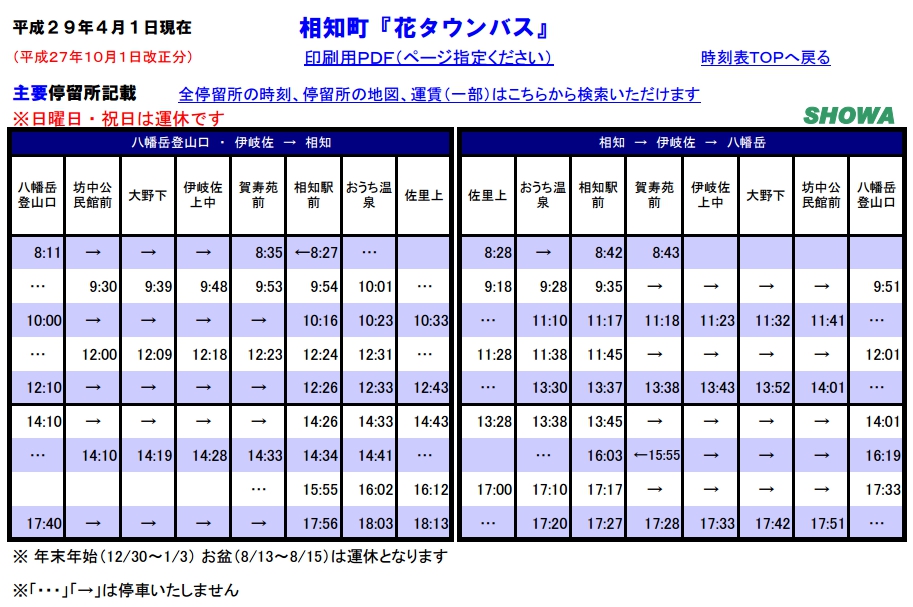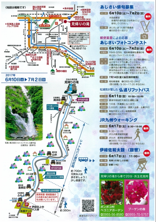 ‧周六及周日:祭典期間有提供接駁計程車(シャトルタクシー)來回相知站和紫陽花祭會場之間,每人每次收費約300日圓。