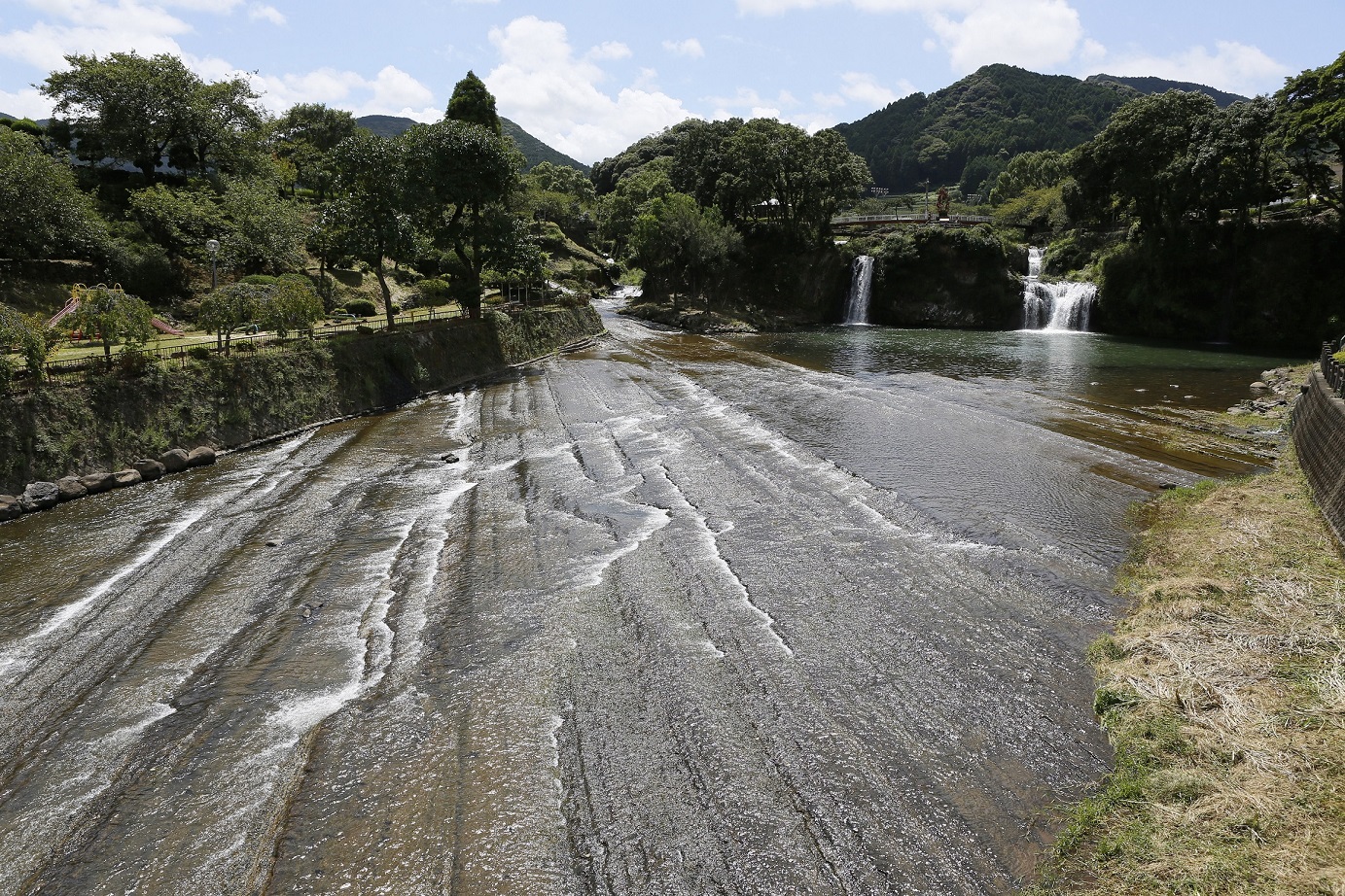 轟之瀑布公園是數百萬年前因火山活動而形成的堆積岩地形,寬闊的台地經河川長期侵蝕才展現出現在的地貌。平坦的台地與火山熔岩冷卻後殘留下的瀑布相映,其景觀相當難得一見。推薦可從嬉野橋沿著嬉野川遊步道慢......<詳細內容>