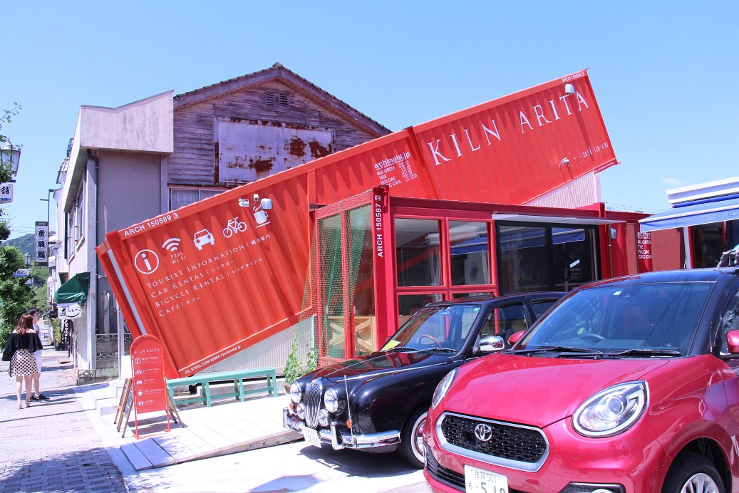 位於JR有田車站前的複合式觀光設施KILN ARITA,以登窯造型為建築設計,紅色的貨櫃屋內,提供各式最新觀光情報,以及附有充電插座的休憩空間,並可在此租借自行車、汽車。整個設施內還有免費Wi-......<詳細內容>