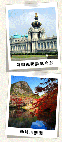 ★佐賀精選景點:拜訪武雄的象徵~建於江戶時代~御船山樂園;朝聖日本史上最成功的圖書館整修計劃~武雄圖書館;前往日本十大清酒產地之一肥前浜宿觀光酒造清酒試飲。